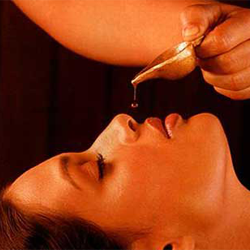 Nasya therapy is meant for cleansing the complete head area. In this therapy, medicinal oils and herbal medications are instilled through the nasal route after fomentation of neck and shoulder area. This therapy removes the toxins from head and neck area and is very beneficial for diseases like migraine, headaches, hair problems, sinusitis, sleep disorders and respiratory ailments.